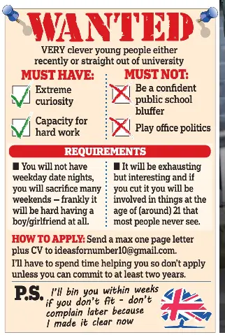 A rambling blogpost by boris johnsons chief adviser dominic cummings calling for weirdos and misfits with odd skills to apply for jobs within no 10 may fall foul of employment law.