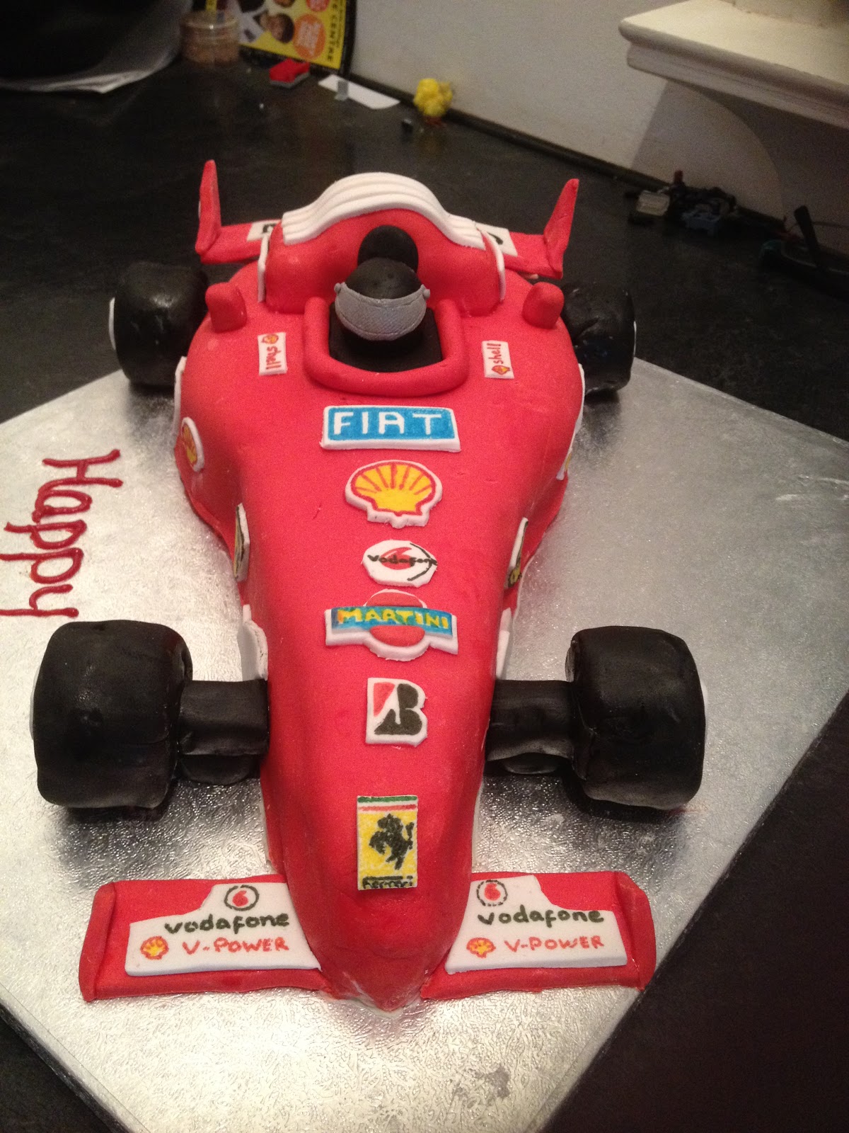 Formula 1 racing fondant birthday cake. A perfect cake for any fan of formula one.